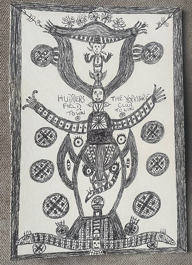 当记者离开时,威尔逊一家坚持要他带走一幅画。和大多数画作一样,这幅画里充满了奇幻生物的复杂涂鸦,它们长着鳍、角、鳞片,瞪着眼睛,咧嘴笑着,还有长鼻子。