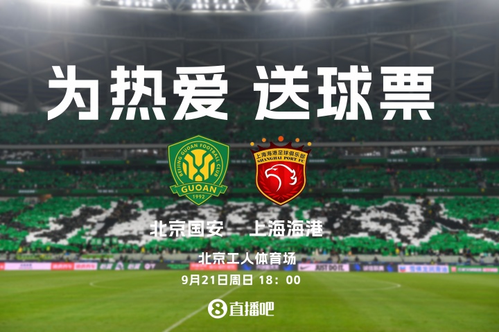 9月21日18:00,中超焦点战,北京国安主场迎战上海海港。北京国安近期中超遭遇两连败,此役能否止住颓势?上海海港目前与中超第一蓉城的积分差距只有2分,来到工体球场海港能否收获分数?小吧将送出两张球票,快来评论区互动,说出本场比赛你最期待哪位球员的表现?